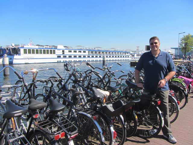 In Amsterdam, the bicycle is king of the red road! There are untold dedicated bike lanes throughout the city–all paved or painted red*– on which a bicyclist has the right-of-way. (Pedestrians be damned!) It’s kinda like in the USA where the car is king and many drivers only give lip service to the rule that pedestrians always have the right-of-way. We were constantly admonished by our Program Director to “Mind the bicycles!” as some Dutch cyclist was furiously ring-ring-ringing his/her bike bell to alert our slow-moving pack of their approach.