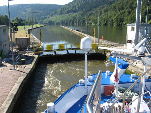 Something I haven’t documented yet is the fact that we will be going through 66 locks in the course of this cruise; in fact, two instances of lockage occurred during the night. Since then, many of these elevation changes have taken place during daylight hours. Here’s one such lock.